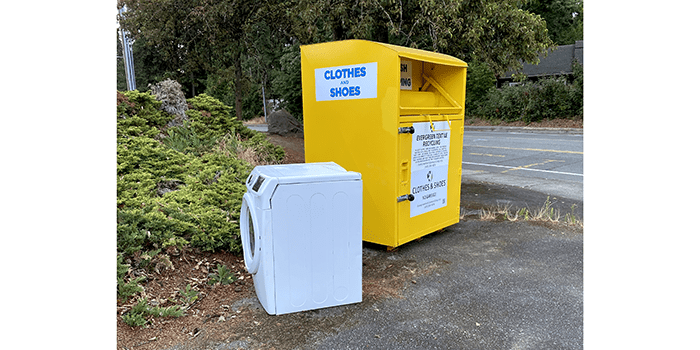 We have three of these donation stations on our routes, and they always accumulate trash. And dryers. We left the dryer.