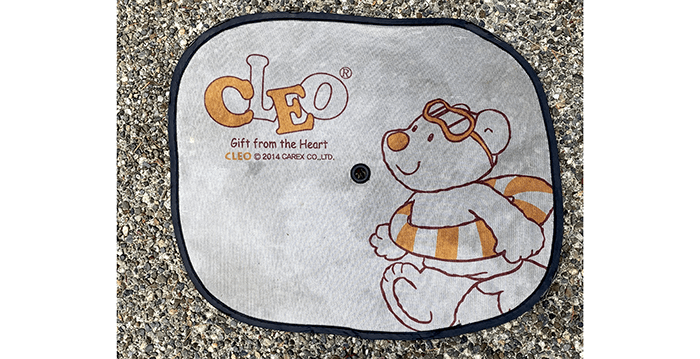 We found a loose sunshade that is designed to stick on a car window and shield the wee ones from the sun.