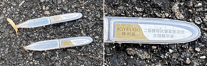 Two small plastic containers. We had no idea what this was so googled it. We got a hit on eBay that had this description, “JOYRUQO Bifid Yeast Anti Wrinkle Firming Wrinkle Lightening Essence jiaorunquan.” But then, we found this video calling it “JOYRUQO SERUM”.