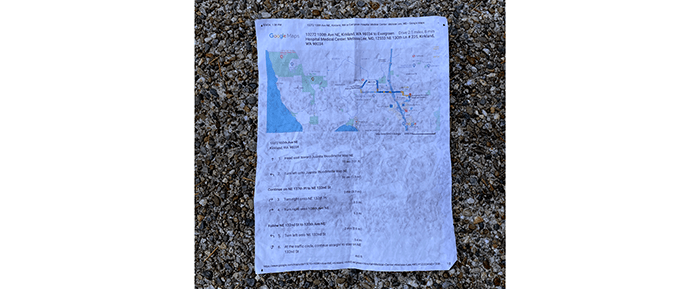 We found a piece of paper with a Google map route printout.
