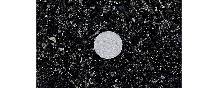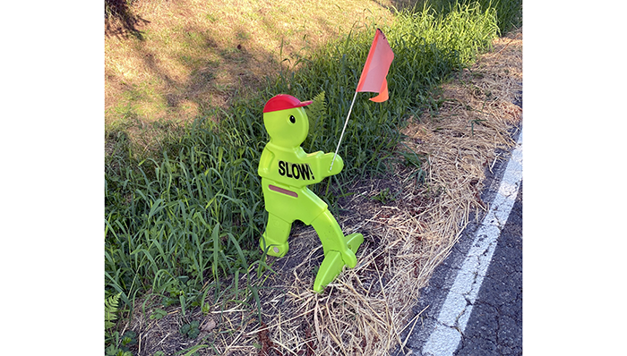 This is a bit eerie. Four years ago, a drain-related construction project was started and abruptly stopped. After months of inactivity, we contacted the city to see what was up. The contractor had gone out of business, and they were working with a new contractor. Finally, the work finished, but a small pile of dirt was left from the first contractor, so the city placed a construction cone on it.
