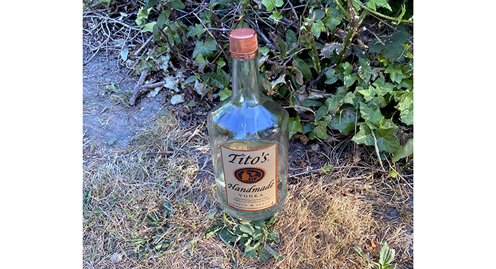 At the top of the Pipeline Trail, a vodka bottle with about an inch of vodka left. Then, halfway down the hill toward home, we found an empty mouthwash bottle. So why is this strange?