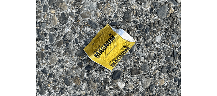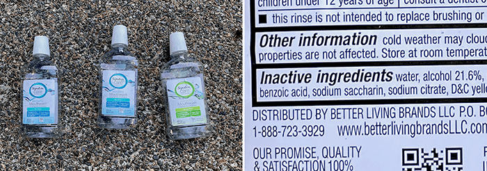 We found two more empties in the same area last week. These things are 21.6 percent alcohol (43 proof). It’s probably under-age kids. They didn’t feel too good after downing these, but their breath is minty-fresh.