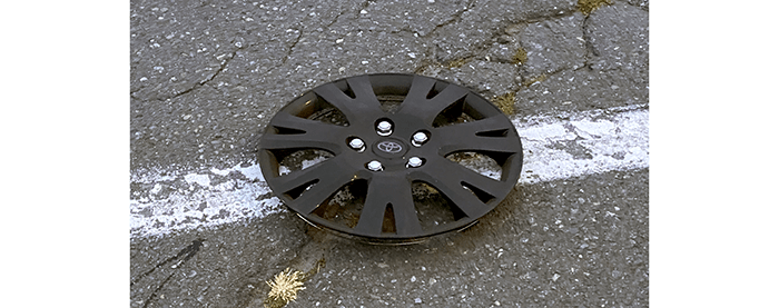 We picked up another Toyota wheel cover on the freeway overpass.