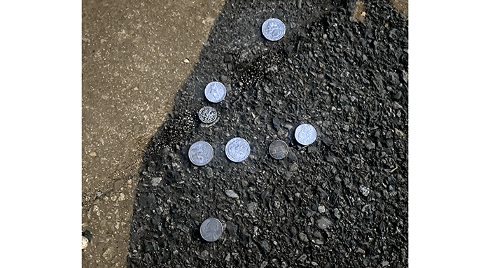 Today was another nice day and we removed a flat crow from the road. Our money finds over the last week has been spotty, so we hired a new guy to scatter money along our routes. Today was his first day, but he does not have the hang of it. He dumped all the money in a single spot.