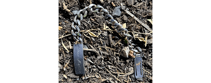 We found this near the 7Eleven. The clasp is worn out and won’t stay closed which is probably why he lost it. We spent some time searching the web for him in the area with no success. So, if anybody knows Steve Matson, let him know we have his bracelet.