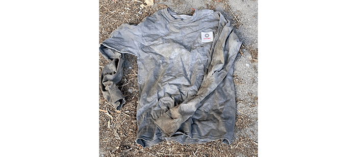 We picked up a torn piece of clothing.