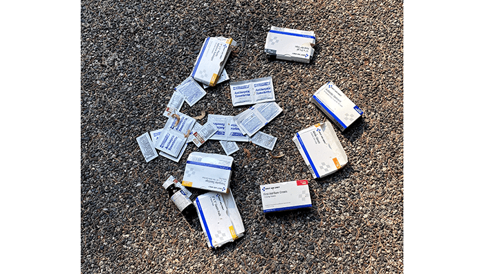 Nearby, we found this bunch of first aid boxes.