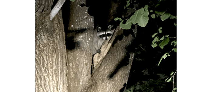 As we were leaving our neighborhood, Janet saw a raccoon and called Chuck across the street to see it.