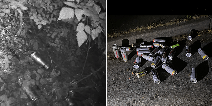 There was a total of twenty-four cans and once we got them out on the street, we defanged them (pulled the pop tabs off) and crushed them to better fit in our bags. When we looked back to the raccoon it was gone, and it was a good thing, too. Damned beer-drinking raccoons.