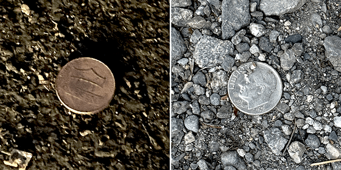 A dime across from the apartments on Woodinville Drive and a penny by the dumpsters in the Bothell parking lot. If someone is tossing change into the dumpsters, we may need to do some dumpster diving.