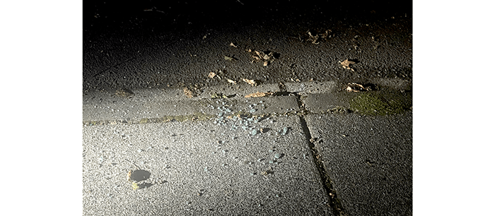 The perpetrators were gone, and the car was gone, but the glass remained behind. Unfortunately, the glass claimed it saw nothing. It was clearly lying, in both senses of the word.