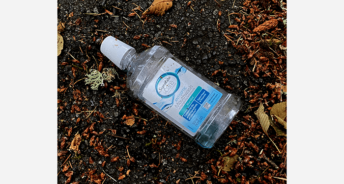 Nearing home, we found yet another empty mouthwash bottle.