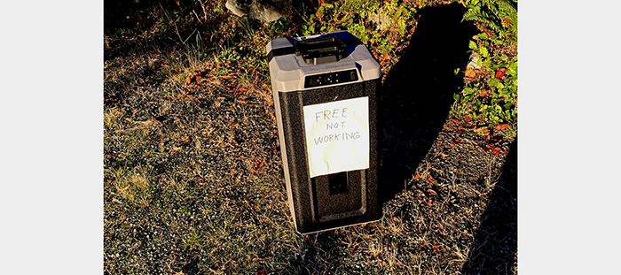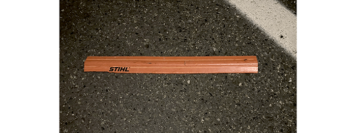 Stihl makes implements like Chain saws, so this is some kind of blade scabbard for a cutting or trimming implement. It wasn’t heavy, but was Heavy, we were near a bus stop, so we dropped in a nearby trash can. It would have been better in a recycle bin, but Stihl.