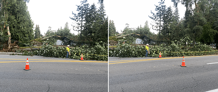Two parts of a large tree went down on Juanita-Woodinville Way.