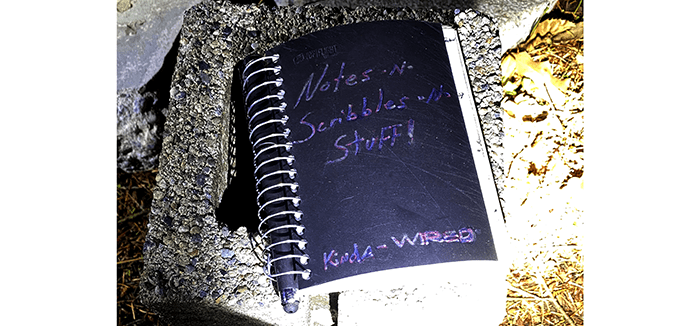 Today, unlike yesterday’s uneventful walk, today’s walk was extremely uneventful. No roadkill and no money. And we only found one item of interest. “Notes-n-Scribbles-n-Stuff!”