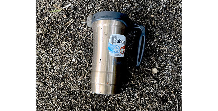 It had six empty White Claw cans plus the carton. At least they were neat litterers and they did leave us the pop tabs.