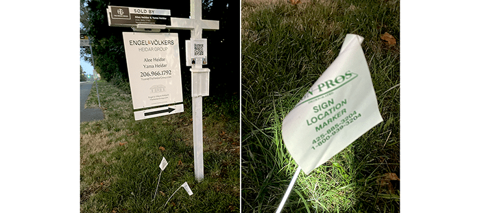 This ticks us off. Sign Pros is a company that puts up signs for Real Estate companies. They have small flags that the agent places where he wants the sign.