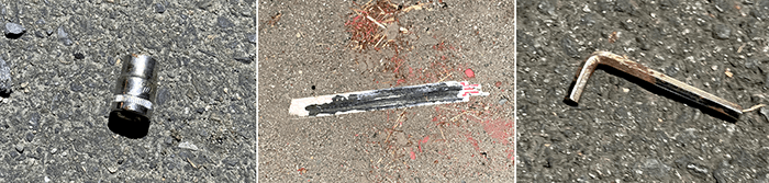 A 10 mm socket on Woodinville Drive, another Sawzall blade, used but serviceable and an Allen wrench.