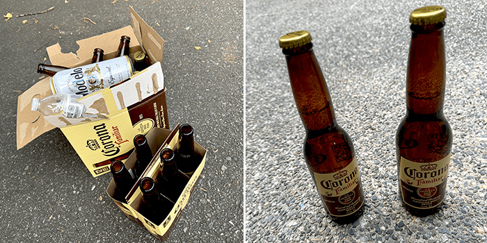 A bunch of empty Corona beer bottles, but they did leave some full ones, one for each of us for breakfast. That’s a lot of beer, but at least they had something to eat.