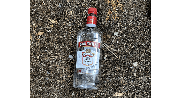 It was not quite empty. There was about a quarter inch of vodka left in the bottom. We admire the litterer who knows his limits and stops drinking before driving home.