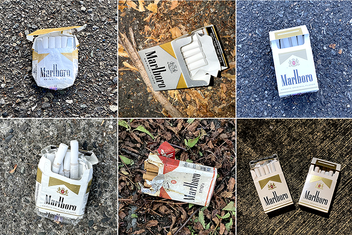 At a price of ten to twelve dollars a pack, this represents about forty bucks, and all are Marlboro. So, we have a few theories: The person remembers the old “Marlboro Man” commercials but cannot stand the taste;