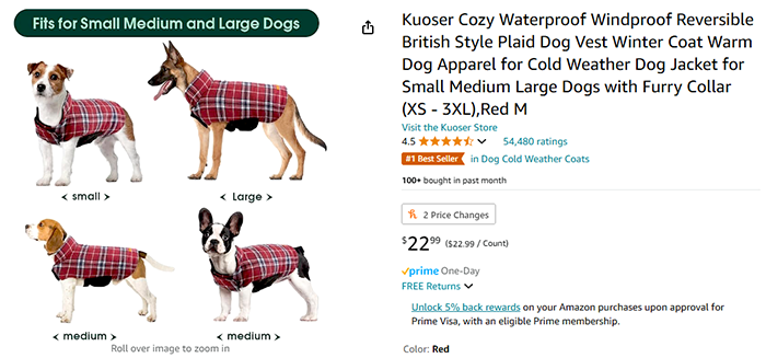 On the sidewalk we picked up a headband from a runner who lost it from speeding and a vest for a dog. We found it on Amazon.