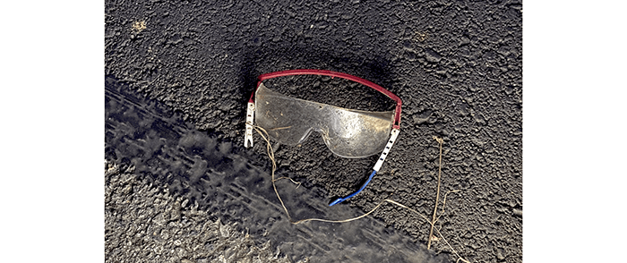 On the freeway on-ramp, we picked up a cloth bag and several pieces of broken plastic scattered near it.