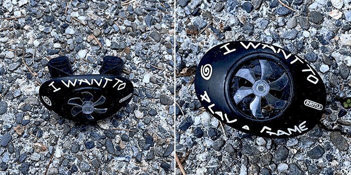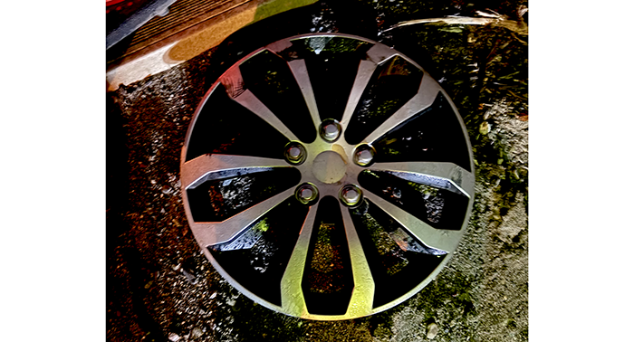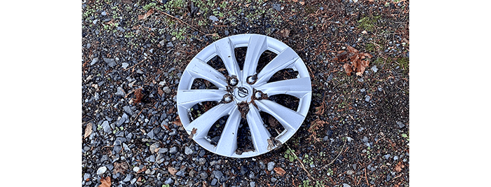 It was in very good condition as far as lost wheel covers go. So, we selected a very nice recycle bin to toss it in.