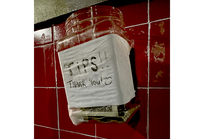 There was over three dollars in it that we could see. It was tempting, but we left it. We like to work for our money finds, not pilfer tip jars.