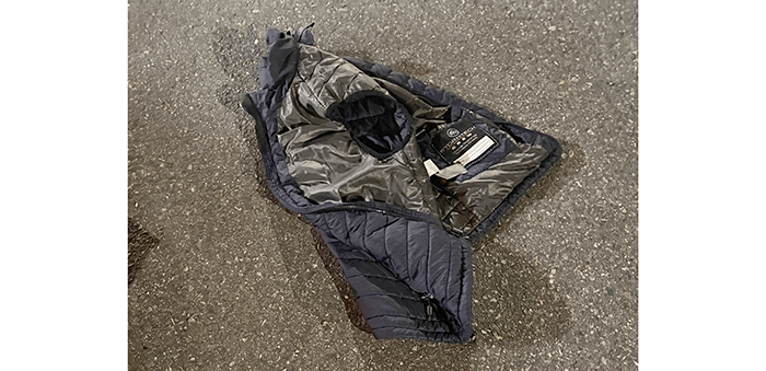 We picked up a couple of articles of clothing today. First, a women’s vest that fell off a vehicle.