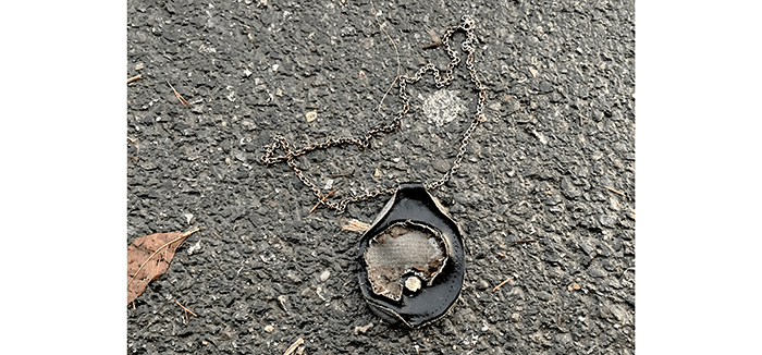 It was some kind of a leather medallion with a gold-colored chain to hang around one’s neck. Upon closer inspection we found that it was from the Suit Yourself Costume Co. so, it was a part of a costume of some type. Not that interesting.