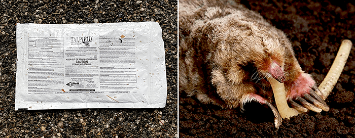 We also found two packages of mole bait that mimics earthworms as shown on their website.