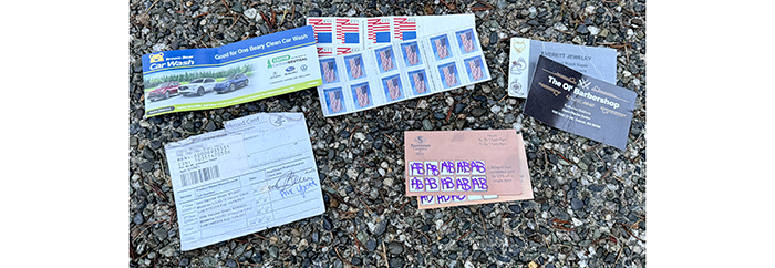 There was a coupon for a free carwash that expires at the end of this month. Several Forever stamps that never expire and a couple of business cards. Then the person’s Covid vaccination card. Yes, we would have gotten rid of that also.