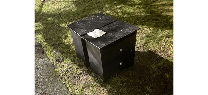 At the apartments on Riverside Drive, someone put a couple of night stands out front with a “free” sign on them.