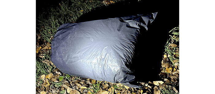 It wasn’t that heavy, but it was too bulky for us to carry. We returned later with the car and retrieved it. We will open it tomorrow and reveal the secrets of this treasure. We’d be pleasantly surprised if it was a large bag of twenty-dollar bills, but we will settle for one-dollar bills. [Edit] Later in the day, we picked up the bag in the car and brought it home. Surprise! No money at all. It contained one smaller bag of random trash that we sorted out. The rest was paper, foam and bubble wrap, including a twenty foot by two-foot piece of bubble wrap. We will take the wrapping materials to a local packaging store. Did we mention there was no money?