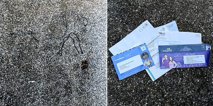 It also had three USB cables and some mail that may or may not have been stolen. When we find stolen mail, it is usually addressed to a few different households, but this was all to a single address in Lynnwood, about ten miles north, so it could be the address of the litterer. But nobody would be that stupid. Would they?