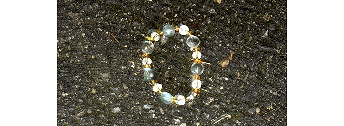 It looked like one of those cheap plastic-bead bracelets we find all the time, but it wasn’t. It was a cheap glass-bead bracelet. Much nicer.