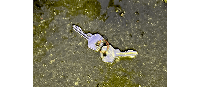 We walked this route on Saturday, but there was still a significant amount of trash uncovered by the melting snow. We found two pairs this morning. First, a pair of identical keys near 7Eleven.