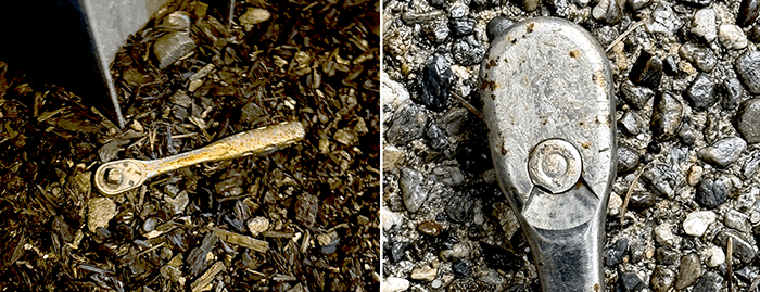 A tightening ratchet. It was slightly rusty but still usable to tighten things. However, it can’t loosen anything because the lever that reverses the ratchet was broken off. It must not be a fan of loose ends.
