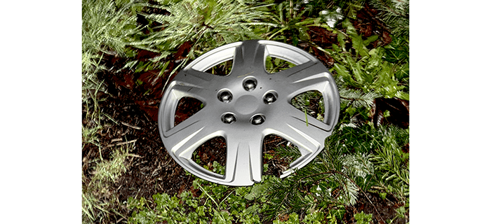 It was in bad condition, and fortunately, a recycle bin was nearby. Wheel covers are a pain to carry.