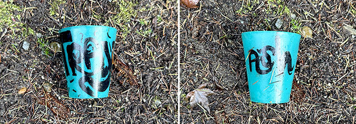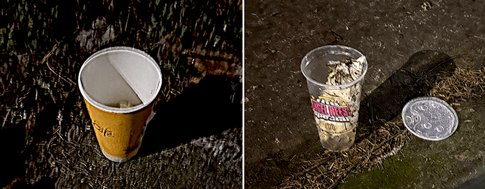 Along Juanita-Woodinville Way, we found two McDonalds cups with urine-soaked napkins in them.