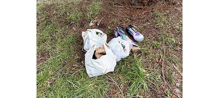 She was told that, if she saw us to stop and take the trash off our hands. After some discussion about the canisters, we explained where the two piles of trash were, and she took off to collect them. Nice. We should have asked for her cell number.