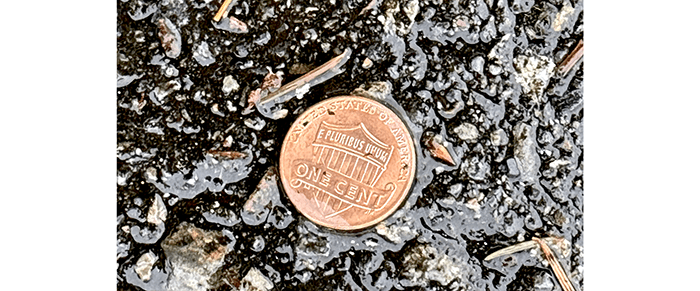 A quarter beside a Honey Bucket latrine. We’re not sure how the quarter ended up there, but it may have been a pay toilet. We should have checked.