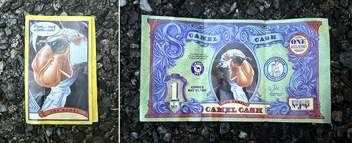 A Camel Cigarette C-Note, presumably the ‘C’ is for ‘Camel.’ It was used to redeem Camel-branded merchandise. The promotion was started in 1991 and ended in 2007 due to increased advertising restrictions. However, it has become a collectible going for a couple bucks or so depending on condition. Okay, we’ll let this go for a buck. Shipping not included. Remember this?