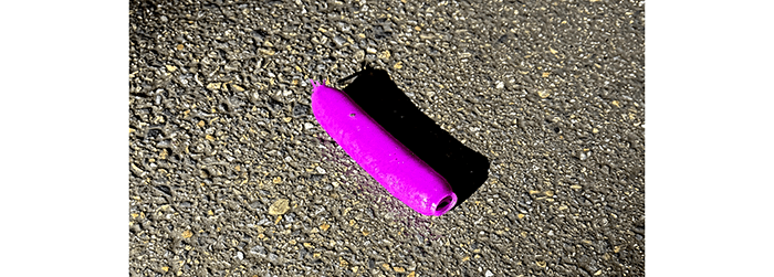 This is a male self-pleasuring device. It’s a hollow, soft silicon cylinder with a texture inside. And yes, we used rubber gloves and our picker.