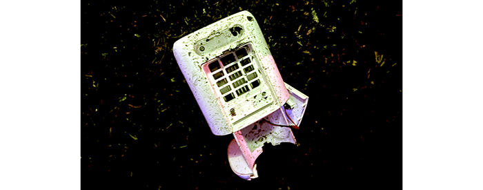 It had been run over and the back plate was missing, so there were no markings on it we could see. However, with some searching, we determined that it was a $45 dehumidifier available on Amazon. It looked much more interesting.