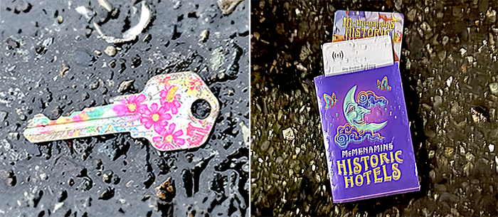 First, an easy-to-identify house key, and yes, also easy to find. The other key was a hotel room key for McMenamins Hotel in Bothell. According to the folder, this person is in room 305 and checks out tomorrow. McMenamins has a couple of pubs in the hotel, so we may pop over and put a couple of beers on their room tab for keeping their lost keys out of the hands of shady characters.