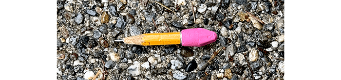 The pencil is a bit short for us, but the eraser is still good. Either this person over sharpens their pencils or they seldom make a mistake. They certainly don’t do crossword puzzles.