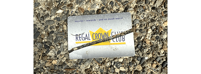 It is a Regal Crown Club for the Regal Theater chain. We were hoping it was a gift card, but it is a rewards card requiring an email address password to access. Now both pieces are in the trash.